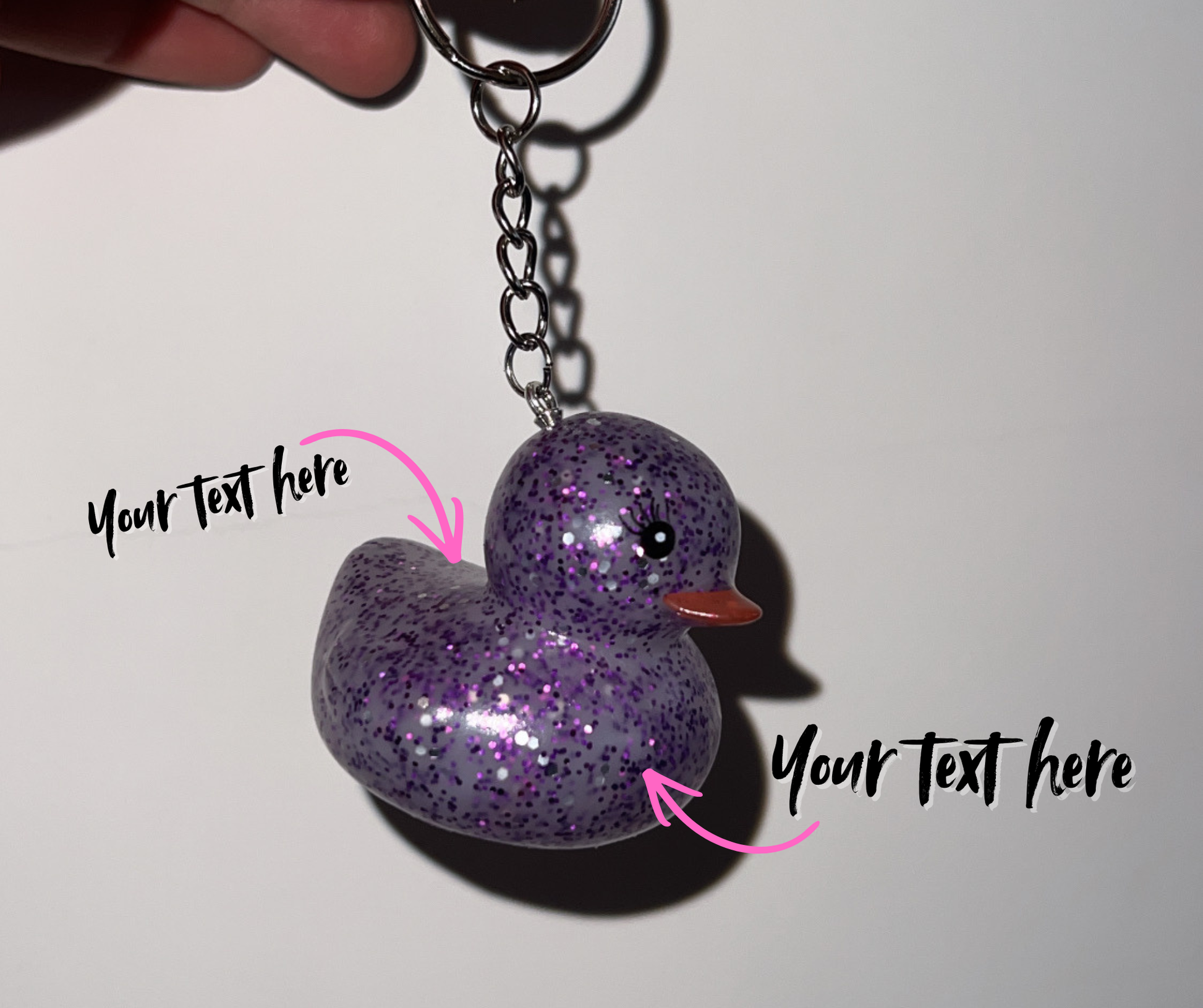 Lucky Duck Keychain – Personalized Good Luck Charm PURPLE GLITTER